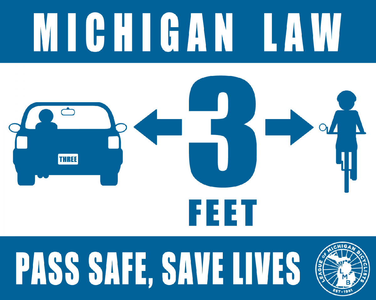 Starting today, Thursday September 27, drivers must give a minimum of 3-feet of room while passing bicyclists on Michigan roadways. This new Public Act was passed with overwhelming bipartisan support and was signed into law by Governor Snyder on June, 29 2018.