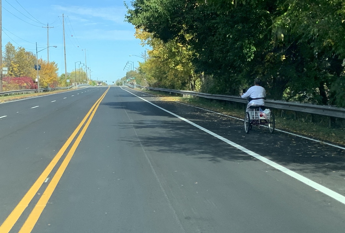 We are pleased to see the recently completed road diet on Summit Street just north of downtown Toledo. The project begins at 131st Street and ends at the Ohio state line where the Michigan side continues with paved shoulders (that is another campaign). Thanks to the Lucas County Engineer's office for reaching out to We Are Traffic for project review and input. There is a recently completed study for the Vistula Neighborhood that would add bike lanes to Summit between Cherry St. and I-280 and we hope that if that segment is developed, the City would extend the bike lanes north. As for the section near Promenade Park, no bike lanes were included but we are asking for sharrows and BMUFL signage to promote the corridor for commuting.