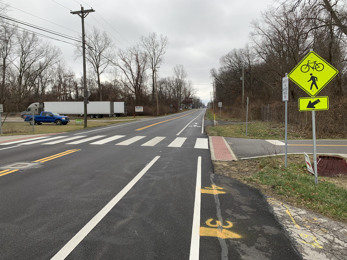 The roadway resurfacing was completed in October 2021. Last year We Are Traffic contacted LCEO and requested a review of the roadway cross-section to see if the existing bike lanes north of the U/P trail could be extended to Central Avenue. While not as wide, there is sufficient width to apply bike lanes as part of the resurfacing with markings and signage to be provided at a later date. We are pleased that the dashed lines were placed at intersections to encourage motorists to look for cyclists and merge into the bike lane before turning right. This helps to prevent "Right-Hooks".